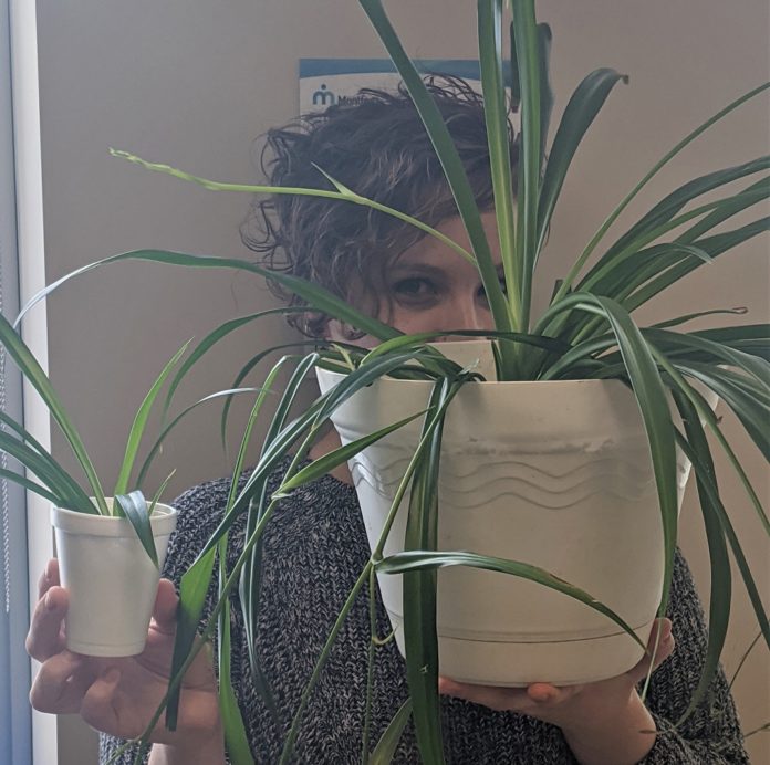 Anik Pitre, ergothérapeute, a vraiment le pouce vert! Sa plante araignée a « explosé » depuis qu’elle l’a apportée à l’hôpital.