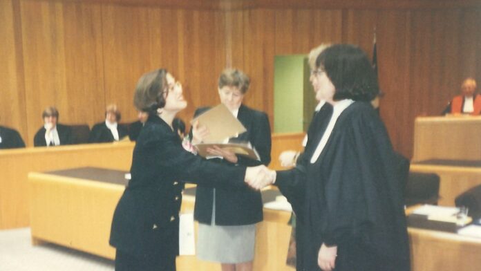 Le marché de l’emploi n’était toutefois pas beaucoup plus rose pour les jeunes avocats. « À l’époque, quand j’ai gradué, le marché de l’emploi dans une petite ville comme Québec n’était pas extraordinaire pour les bureaux d’avocats, il n’y avait pas de nouveaux postes d’avocats juniors, » dit Caroline.