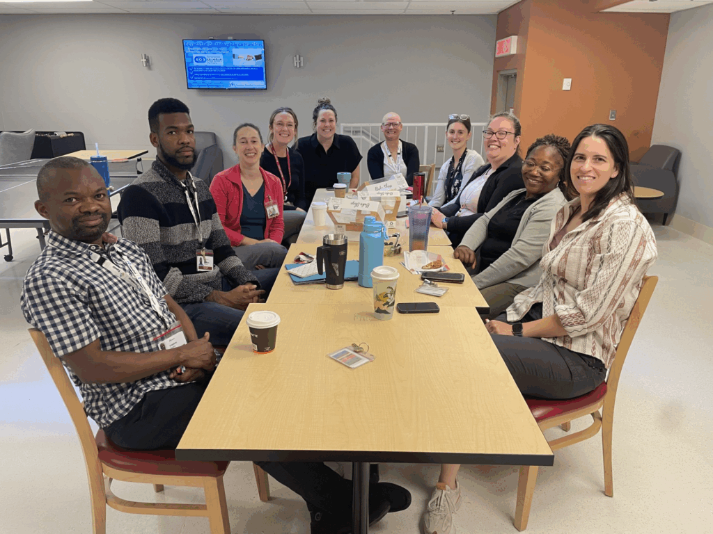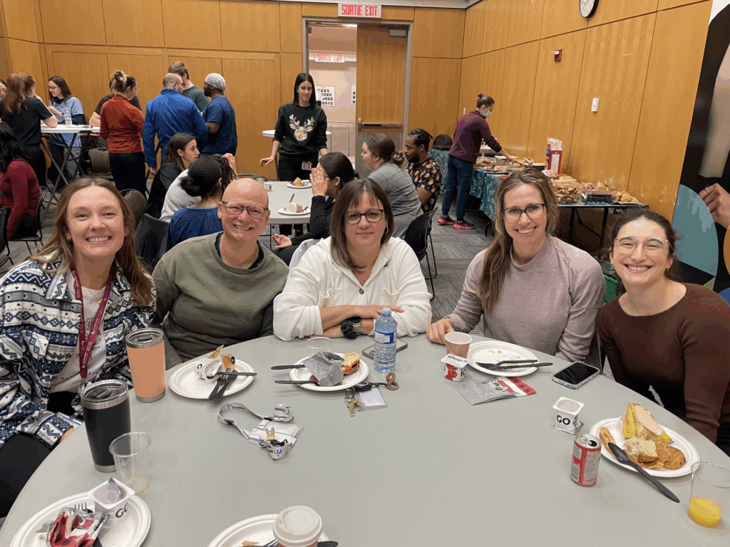 Au-delà du professionnalisme, nous cultivons aussi des moments de complicité : des pauses bien méritées, des farces improvisées, des célébrations rassembleuses et même cette journée mémorable où l’équipe des travailleuses sociales du Programme de santé mentale interne portaient toutes les mêmes vêtements. Ces instants reflètent ce qui nous unit profondément — la confiance, le respect et le plaisir de travailler côte à côte.
