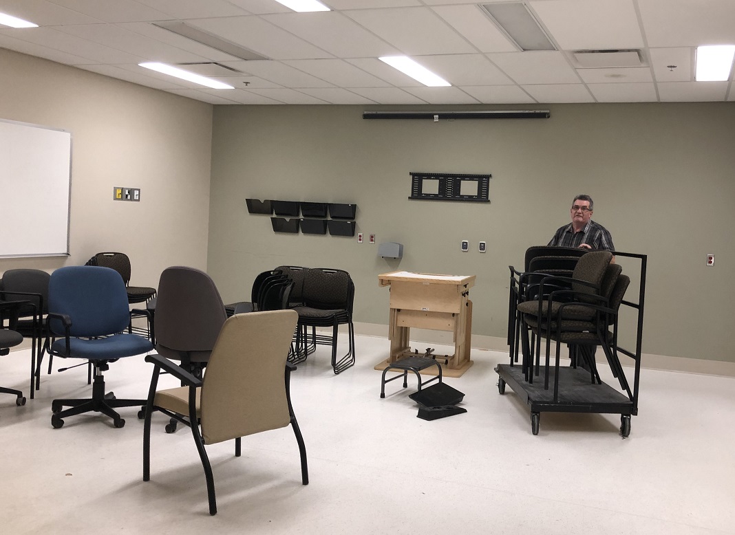 Normand vide une salle de réunion pour la transformation en chambre de patients